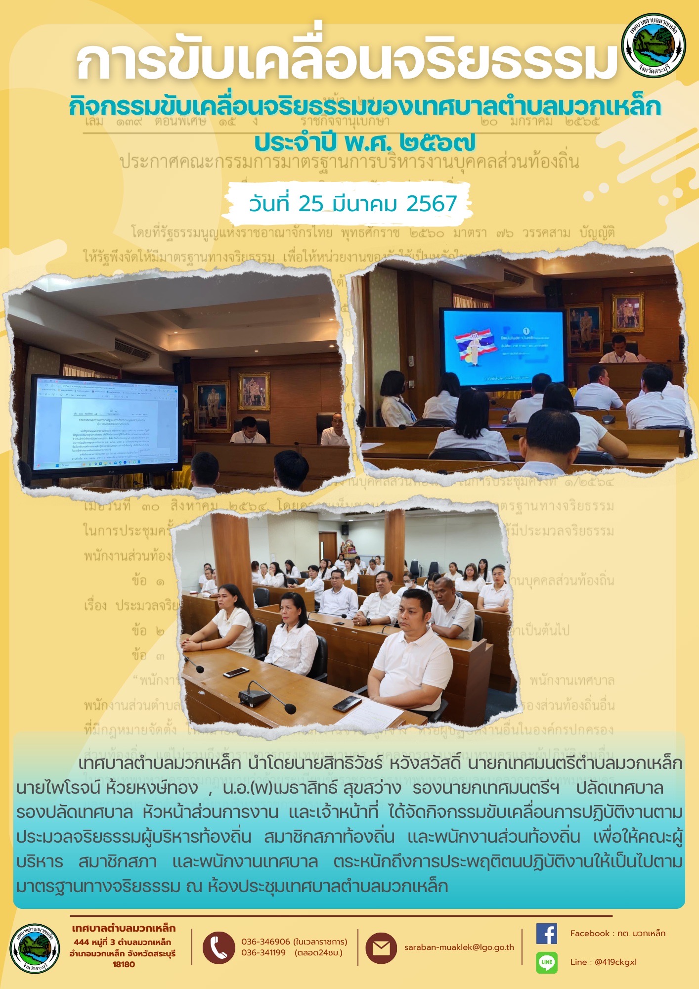 กิจกรรมขับเคลื่อนจริยธรรม ของเทศบาลตำบลมวกเหล็ก ประจำปี พ.ศ. ๒๕๖๗