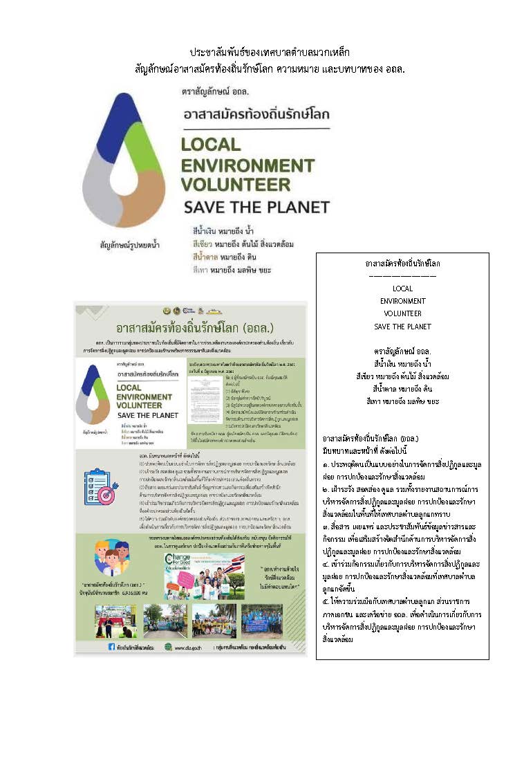 ประชาสัมพันธ์ของเทศบาลตำบลมวกเหล็ก สัญลักษณ์อาสาสมัครท้องถิ่นรักษ์โลก ความหมายและบทบาท อถล.
